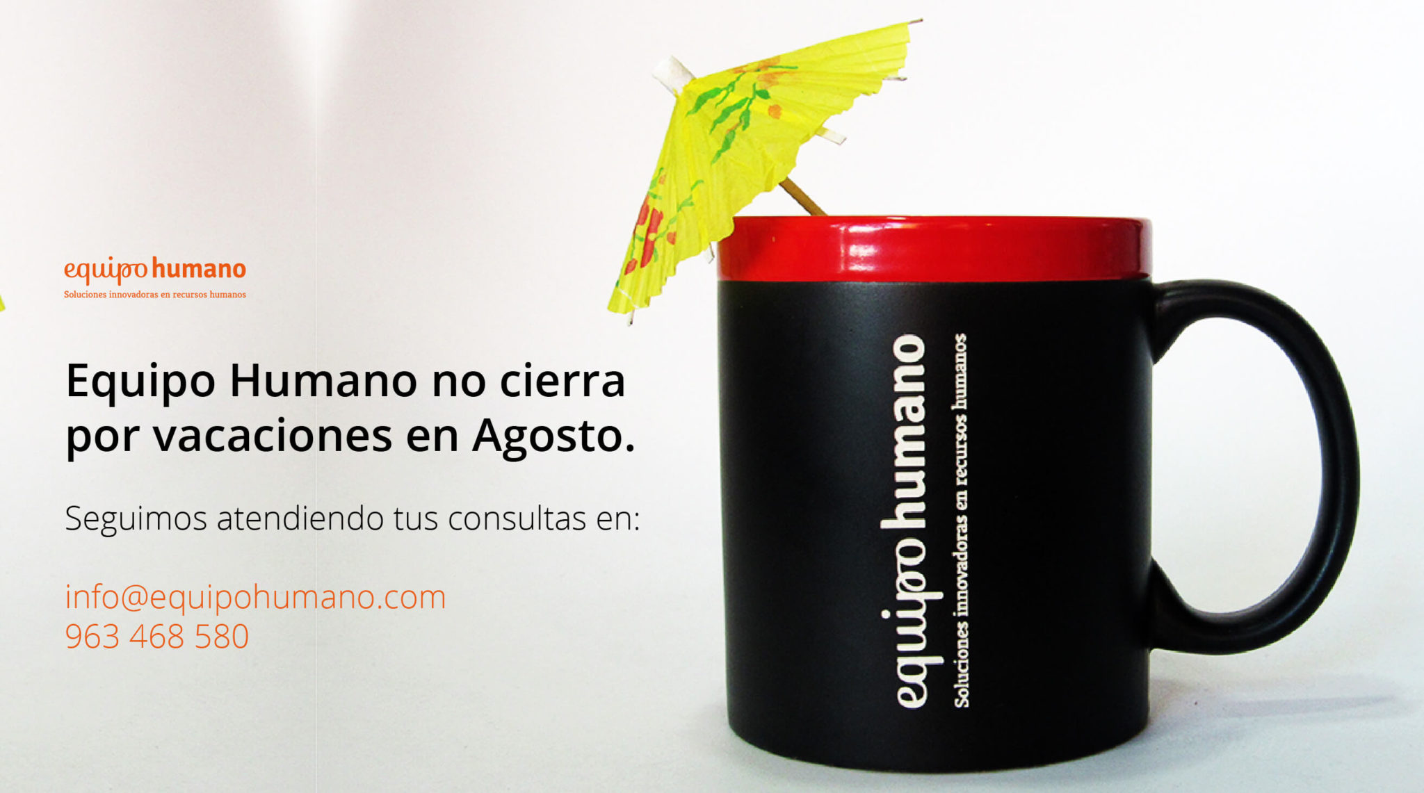 Las personas que formamos Equipo Humano queremos anunciarte que nos hemos organizado para que puedas seguir contando con nosotros durante el mes de Agosto, y así poder seguir desarrollando tus planes formativos, consultoría, gestión del talento… y cualquier proyecto con el que estemos colaborando contigo.